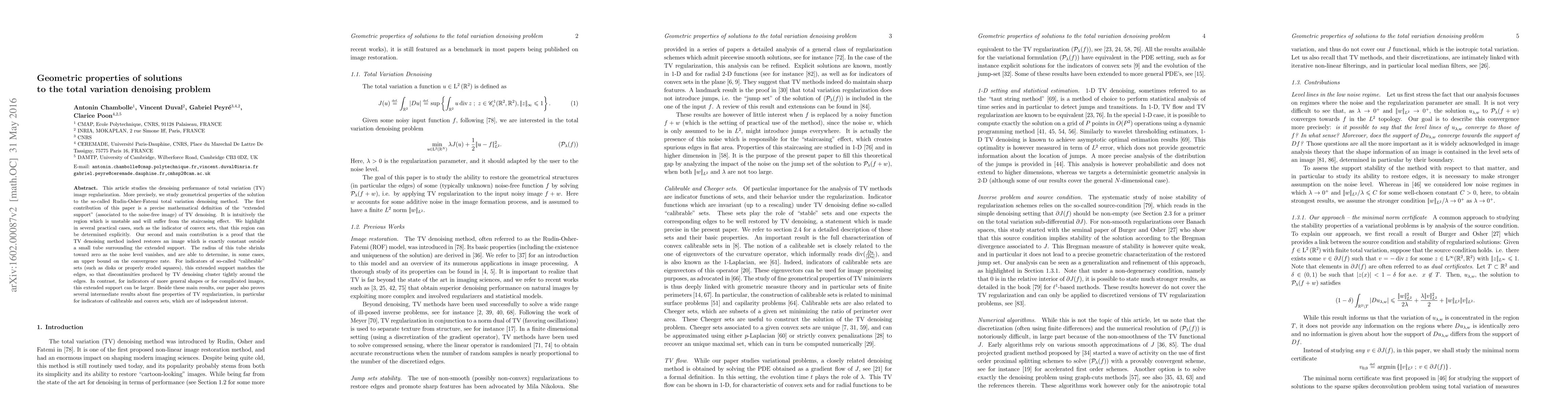 This paper studies the denoising performance of total variation image regularization, discovering that TV denoising restores images outside a small tube surrounding the 'extended support', which can be determined explicitly in certain cases.