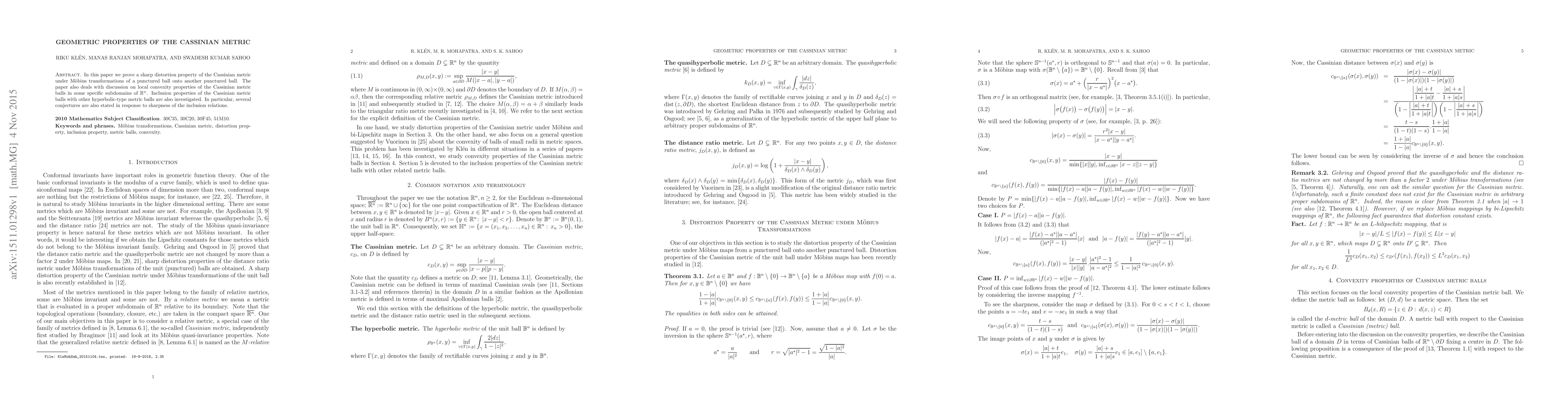 In this paper we prove a sharp distortion property of the Cassinian metric under M\"obius transformations of a punctured ball onto another punctured ball. The paper also deals with discussion on local convexity properties of the Cassinian metric balls in some specific subdomains of $\mathbb{R}^n$. Inclusion properties of the Cassinian metric balls with other hyperbolic-type metric balls are also investigated. In particular, several conjectures are also stated in response to sharpness of the inclusion relations.