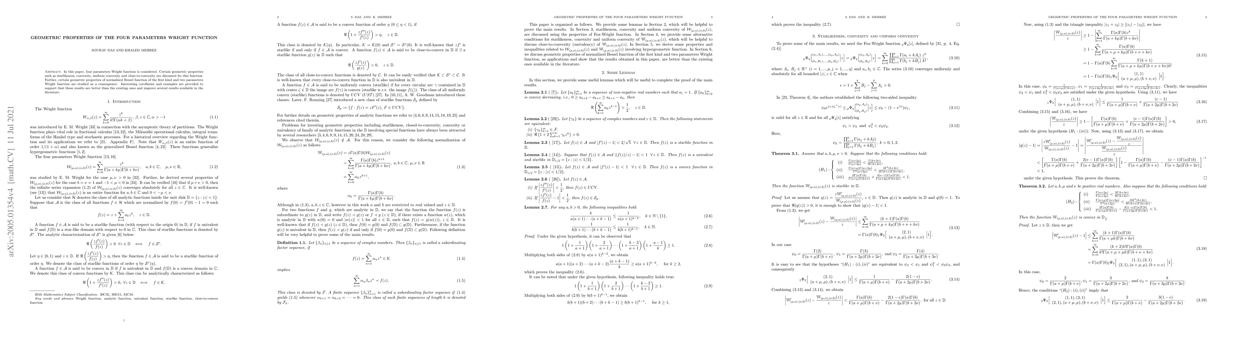 This paper investigates geometric properties like starlikeness, convexity, uniform convexity, and close-to-convexity of the four parameters Wright function, and also examines related properties of normalized Bessel functions and two parameters Wright functions, offering improvements over existing literature.