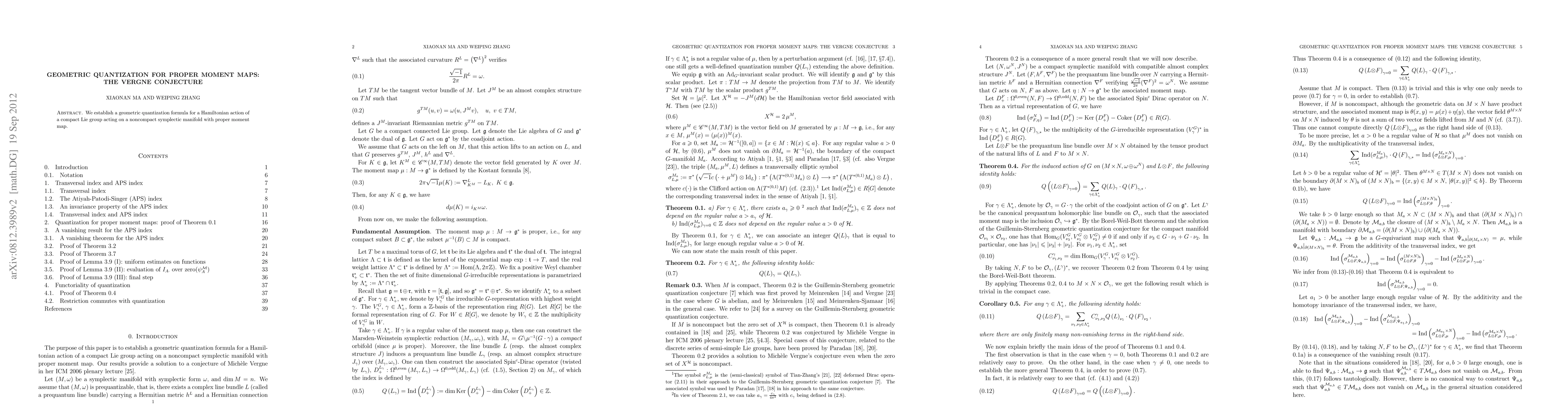 Summary: The paper provides a geometric quantization formula for Hamiltonian actions on noncompact symplectic manifolds with proper moment maps, confirming the Vergne conjecture. This establishes a framework for quantizing such systems in geometric terms.