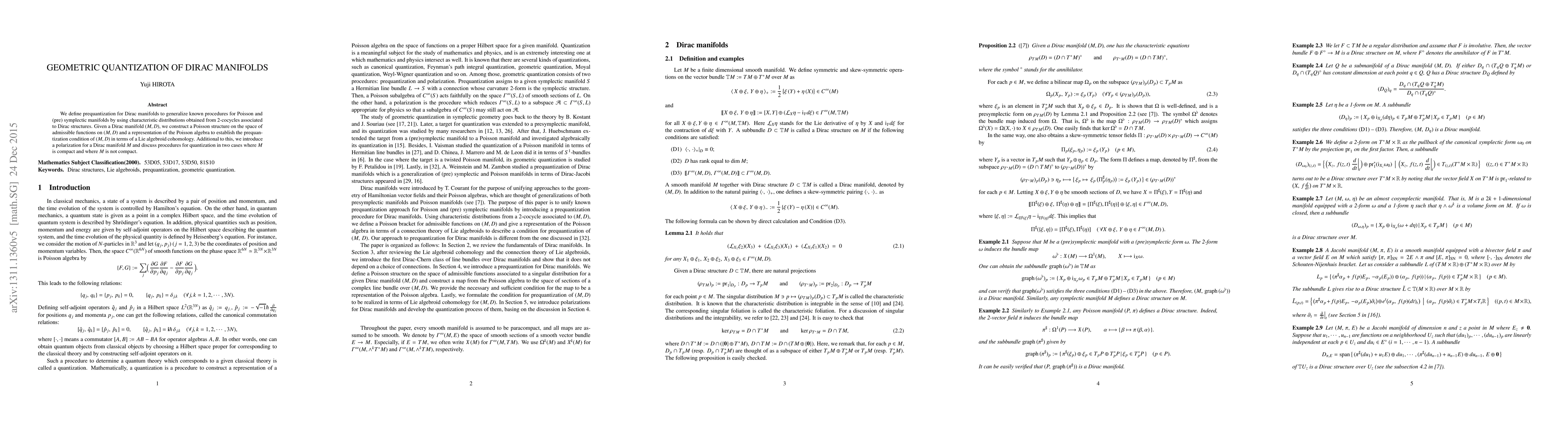 We define prequantization for Dirac manifolds to generalize known procedures for Poisson and (pre) symplectic manifolds by using characteristic distributions obtained from 2-cocycles associated to Dirac structures. Given a Dirac manifold $(M,D)$, we construct Poisson structure on the space of admissible functions on $(M,D)$ and a representation of the Poisson algebra to establish the prequantization condition of $(M,D)$ in terms of a Lie algebroid cohomology. Additional to this, we introduce a polarization for a Dirac manifold $M$ and discuss procedures for quantization in two cases where $M$ is compact and where $M$ is not compact.