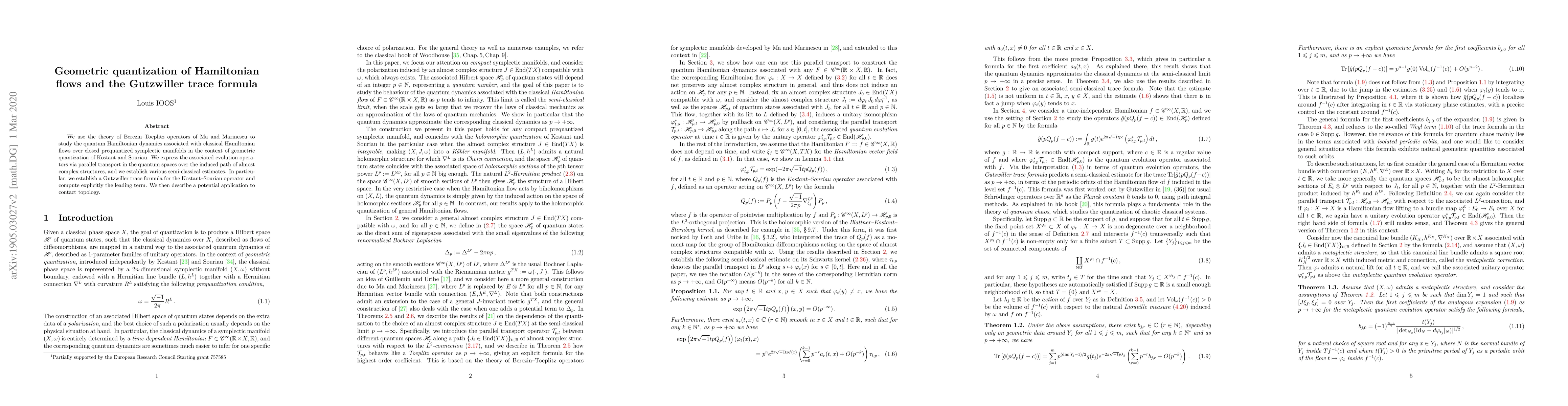 This paper employs Berezin-Toeplitz operators to explore quantum Hamiltonian dynamics linked to classical Hamiltonian flows on prequantized symplectic manifolds. The Gutzwiller trace formula is derived for the Kostant-Souriau operator, with a focus on semi-classical estimates and explicit computation of the leading term, potentially extending to applications in contact topology.