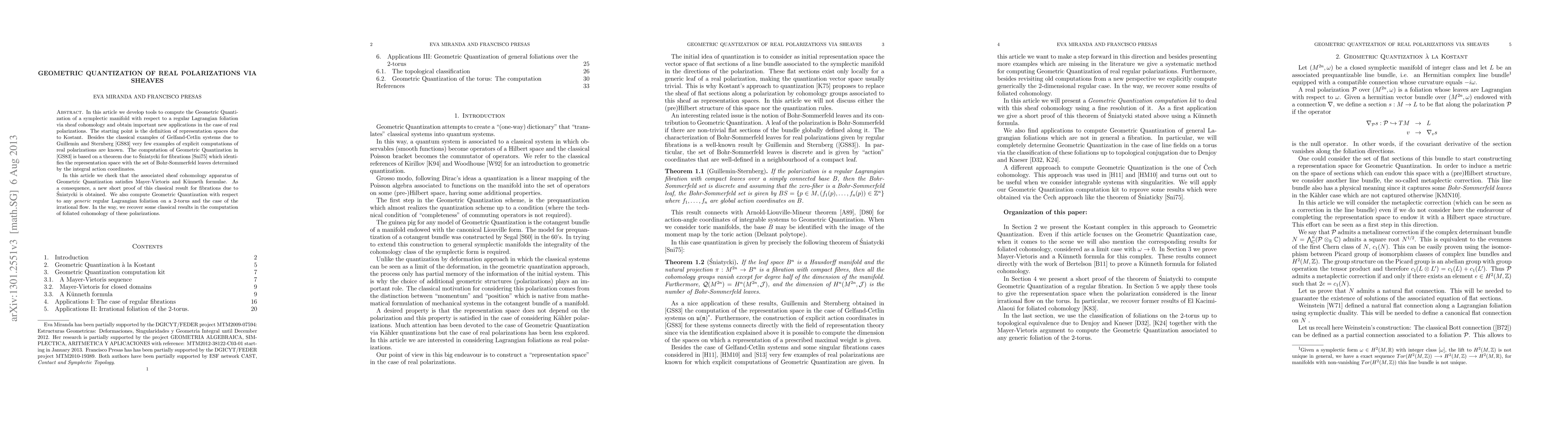 This paper develops techniques for computing Geometric Quantization on a symplectic manifold with respect to regular Lagrangian foliations using sheaf cohomology. It provides new applications for real polarizations, particularly for Gelfand-Cetlin systems, and verifies the satisfaction of Mayer-Vietoris and Künneth formulae in the sheaf cohomology framework.