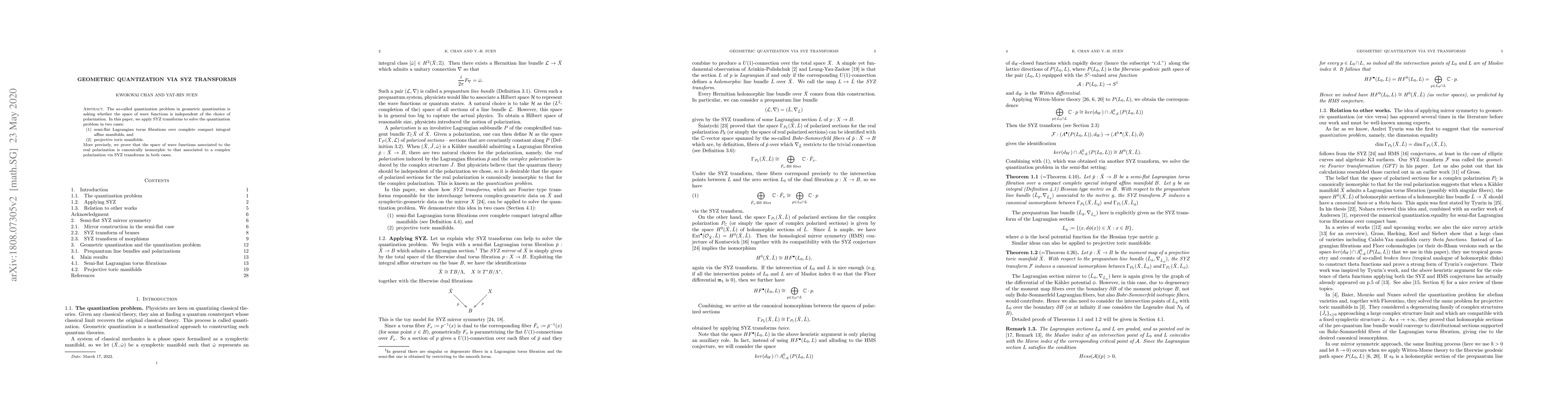 Researchers solve the quantization problem in geometric quantization using SYZ transforms, proving that the space of wave functions is independent of polarization choice for semi-flat Lagrangian torus fibrations and projective toric manifolds.