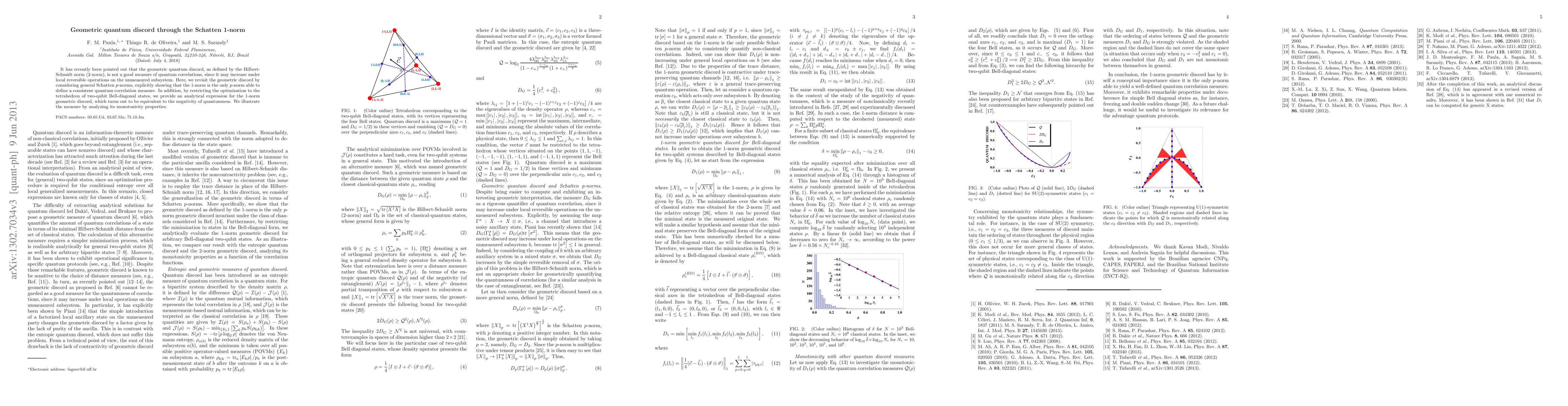 It has recently been pointed out that the geometric quantum discord, as defined by the Hilbert-Schmidt norm (2-norm), is not a good measure of quantum correlations, since it may increase under local reversible operations on the unmeasured subsystem. Here, we revisit the geometric discord by considering general Schatten p-norms, explicitly showing that the 1-norm is the only p-norm able to define a consistent quantum correlation measure. In addition, by restricting the optimization to the tetrahedron of two-qubit Bell-diagonal states, we provide an analytical expression for the 1-norm geometric discord, which turns out to be equivalent to the negativity of quantumness. We illustrate the measure by analyzing its monotonicity properties.