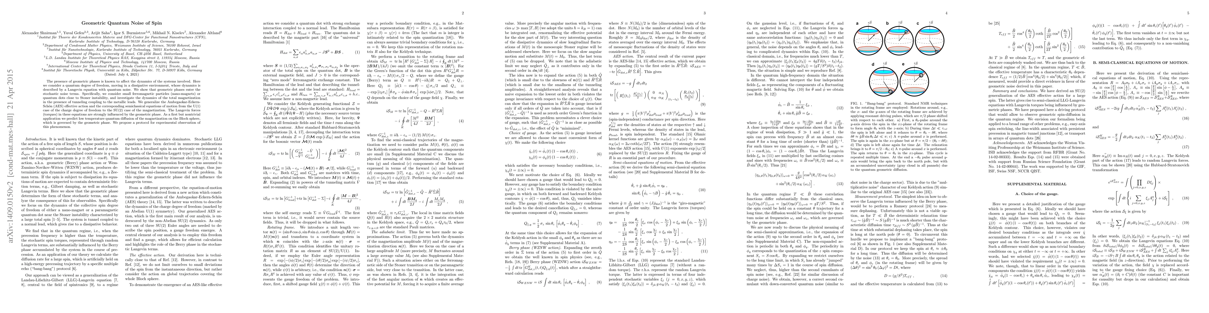 The presence of geometric phases is known to affect the dynamics of the systems involved. Here we consider a quantum degree of freedom, moving in a dissipative environment, whose dynamics is described by a Langevin equation with quantum noise. We show that geometric phases enter the stochastic noise terms. Specifically, we consider small ferromagnetic particles (nano-magnets) or quantum dots close to Stoner instability, and investigate the dynamics of the total magnetization in the presence of tunneling coupling to the metallic leads. We generalize the Ambegaokar-Eckern-Sch\"on (AES) effective action and the corresponding semiclassical equations of motion from the U(1) case of the charge degree of freedom to the SU(2) case of the magnetization. The Langevin forces (torques) in these equations are strongly influenced by the geometric phase. As a first but nontrivial application we predict low temperature quantum diffusion of the magnetization on the Bloch sphere, which is governed by the geometric phase. We propose a protocol for experimental observation of this phenomenon.