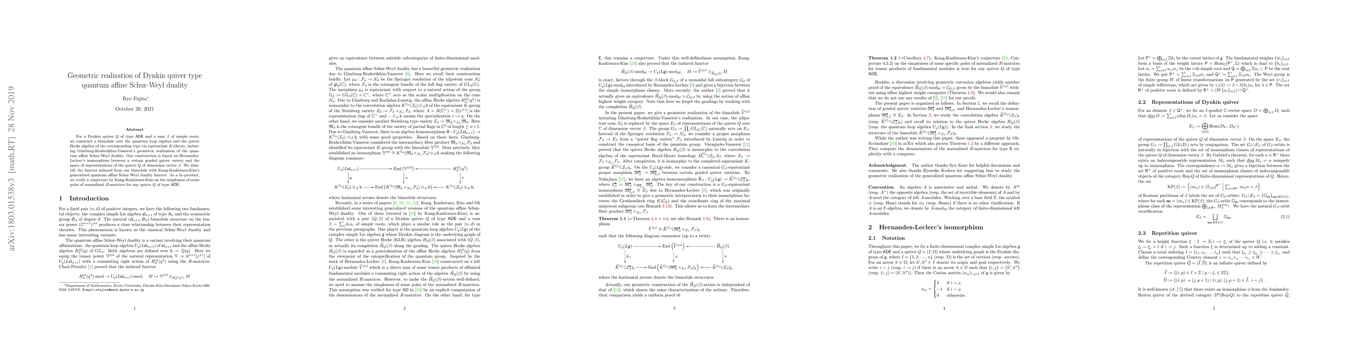 This paper constructs a bimodule over quantum loop algebra and quiver Hecke algebra via equivariant K-theory, extending geometric realizations of quantum affine Schur-Weyl duality. The construction uses Hernandez-Leclerc's isomorphism and verifies a conjecture on the simpleness of certain poles of normalized R-matrices.