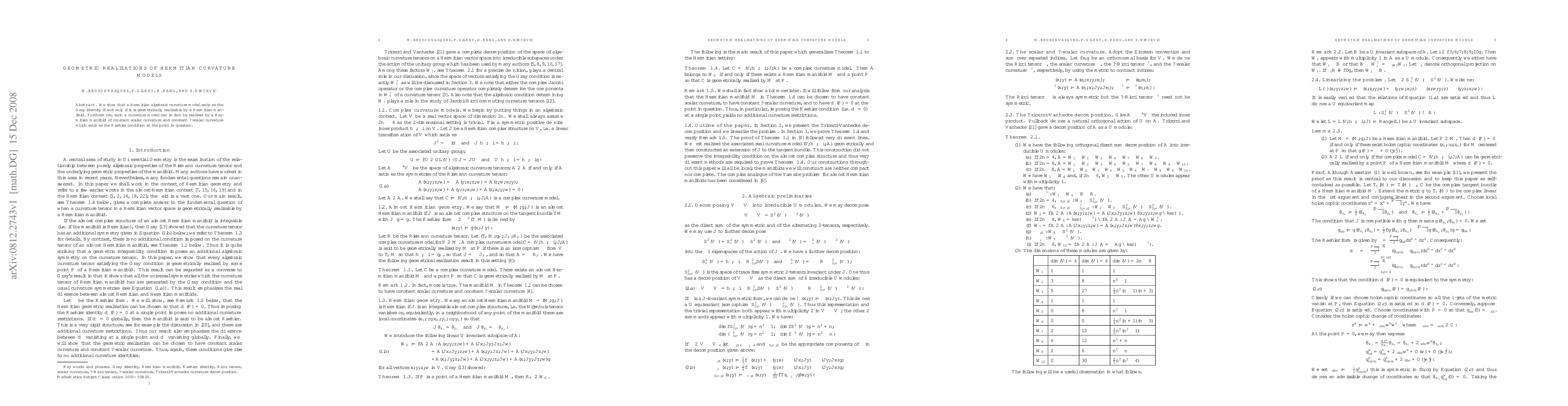 We show that a Hermitian algebraic curvature model satisfies the Gray identity if and only if it is geometrically realizable by a Hermitian manifold. Furthermore, such a curvature model can in fact be realized by a Hermitian manifold of constant scalar curvature and constant *-scalar curvature which satisfies the Kaehler condition at the point in question.