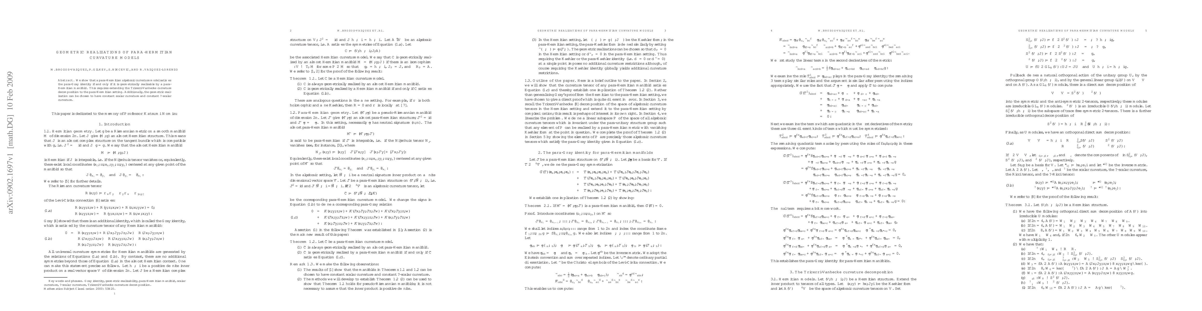 The paper establishes that a para-Hermitian algebraic curvature model adheres to the para-Gray identity if and only if it can be realized geometrically via a para-Hermitian manifold. The study extends the Tricerri-Vanhecke curvature decomposition for this purpose and allows for realizations with constant scalar and *-scalar curvature.
