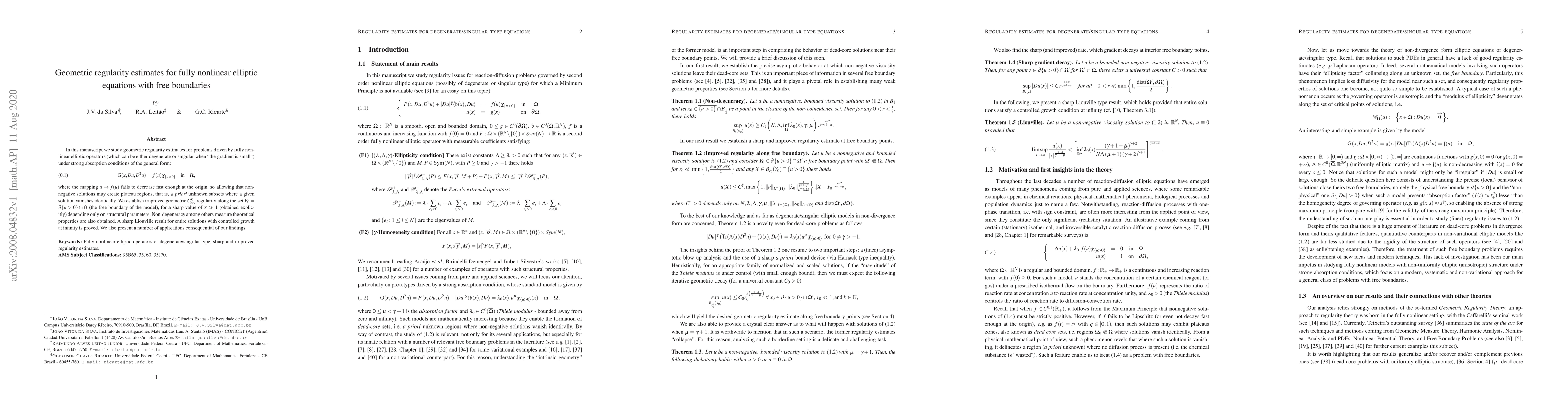 This paper establishes improved geometric regularity estimates for fully nonlinear elliptic equations with free boundaries under strong absorption conditions, proving non-degeneracy and a sharp Liouville result for entire solutions. The findings also yield consequential applications.