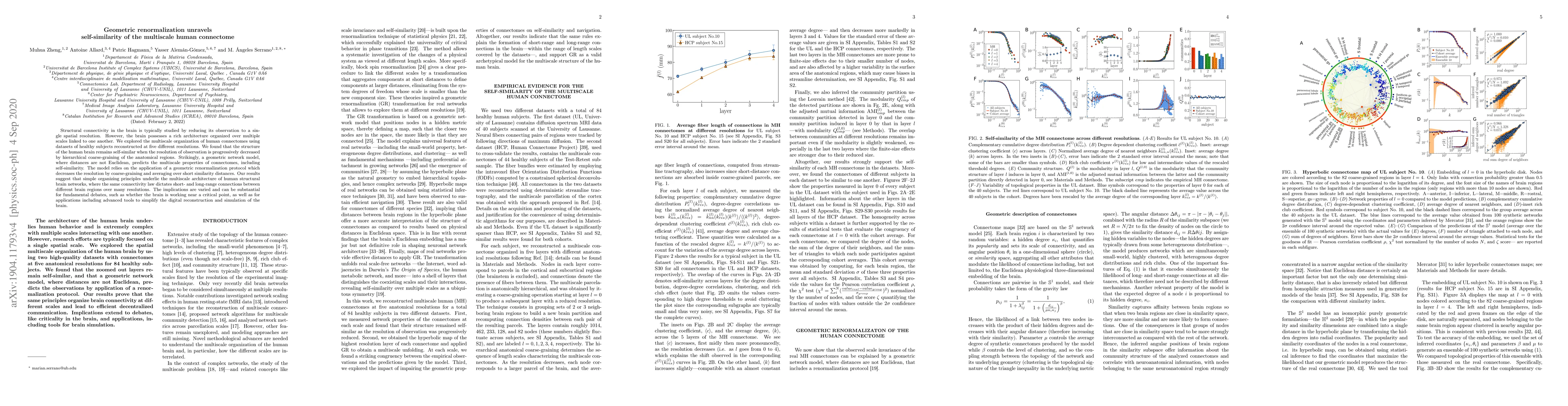 This paper investigates the multiscale organization of the human connectome using datasets at different resolutions, revealing that the brain's structure remains self-similar across scales. The study employs a geometric renormalization model to predict these multiscale properties, suggesting a unifying principle governing the brain's connectivity across different resolutions.