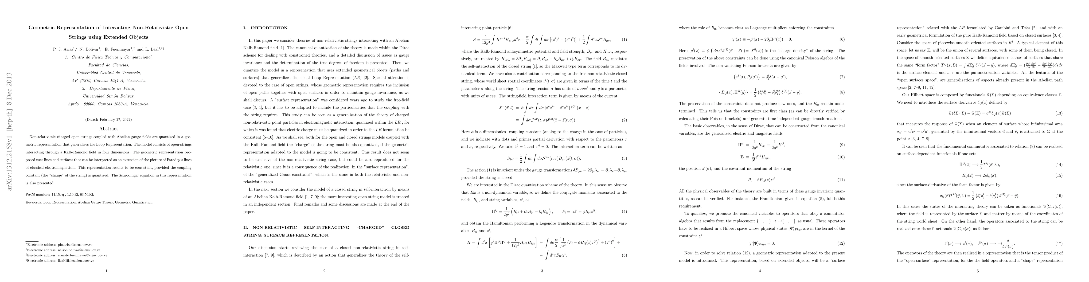 Non-relativistic charged open strings coupled with Abelian gauge fields are quantized in a geometric representation that generalizes the Loop Representation. The model consists of open-strings interacting through a Kalb-Ramond field in four dimensions. The geometric representation proposed uses lines and surfaces that can be interpreted as an extension of the picture of Faraday's lines of classical electromagnetism. This representation results to be consistent, provided the coupling constant (the "charge" of the string) is quantized. The Schr\"odinger equation in this representation is also presented.