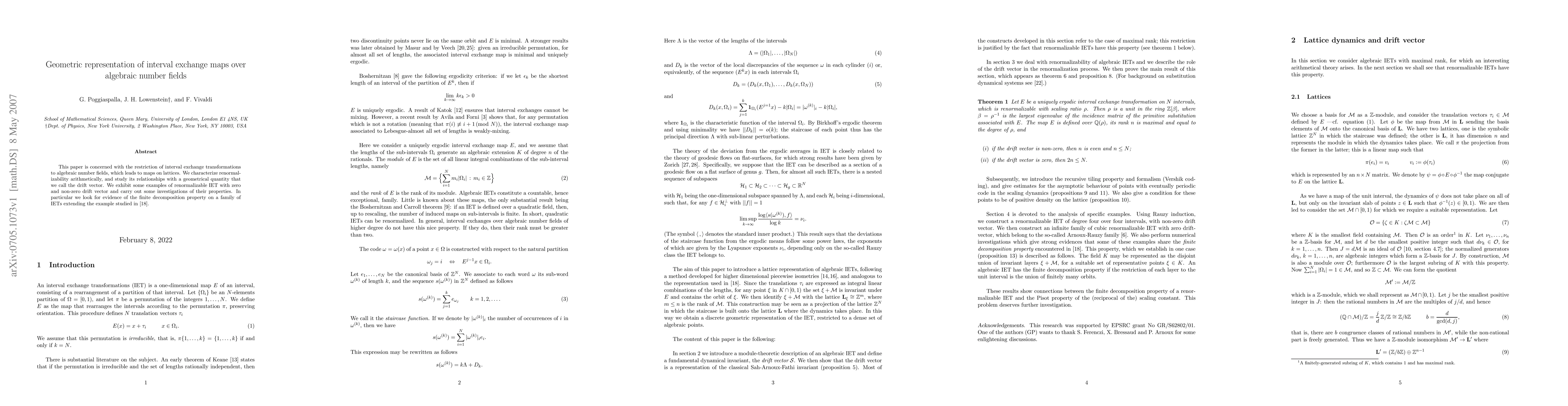 This paper explores interval exchange transformations restricted to algebraic number fields, focusing on renormalizability and its connection to a drift vector. It investigates the finite decomposition property and provides examples of renormalizable maps with varying drift vectors.