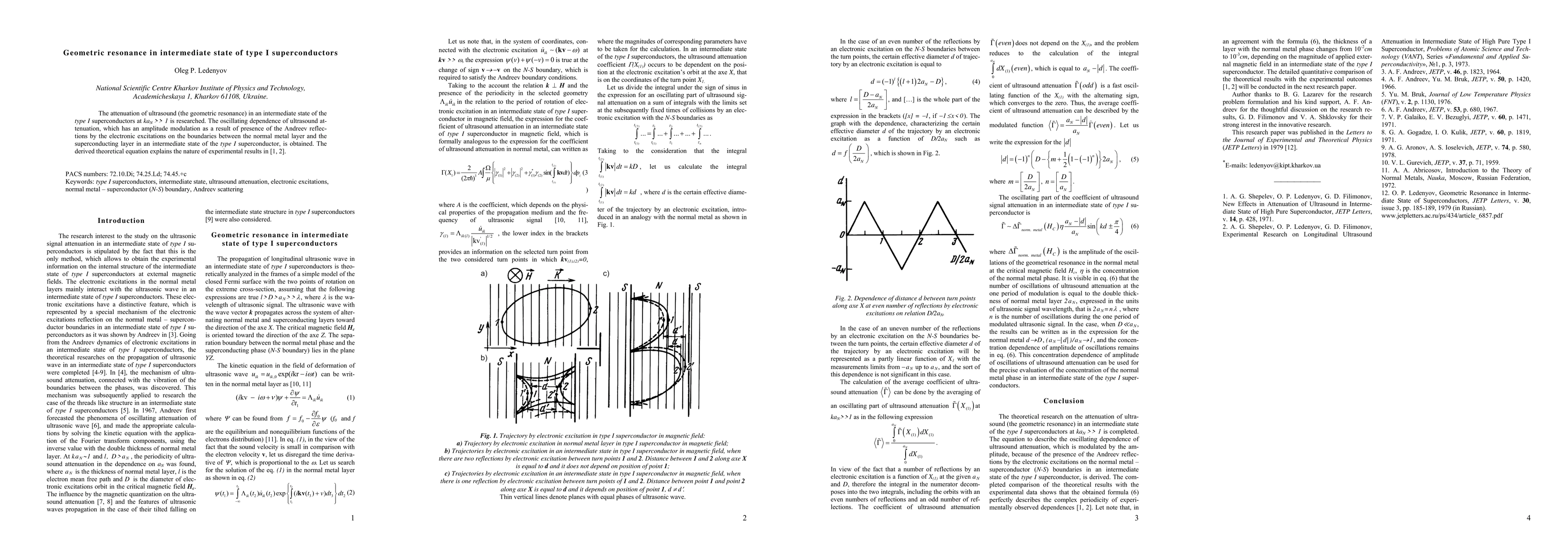 This paper investigates the geometric resonance in type I superconductors during their intermediate state, revealing an oscillating dependence in ultrasound attenuation modulated by Andreev reflections. The theoretical model aligns with experimental observations from previous studies.