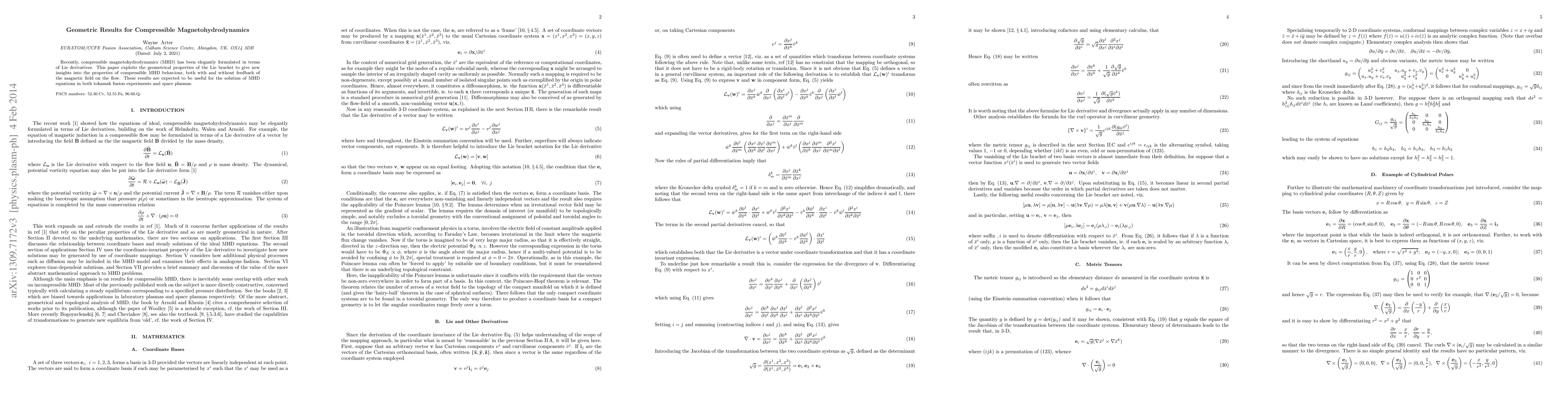 Recently, compressible magnetohydrodynamics (MHD) has been elegantly formulated in terms of Lie derivatives. This paper exploits the geometrical properties of the Lie bracket to give new insights into the properties of compressible MHD behaviour, both with and without feedback of the magnetic field on the flow. These results are expected to be useful for the solution of MHD equations in both tokamak fusion experiments and space plasmas.