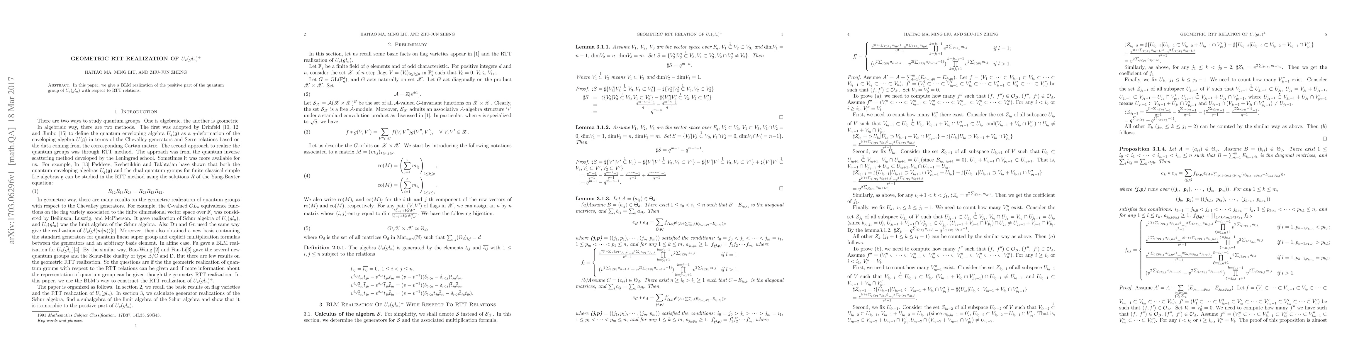 In this paper, we give a BLM realization of the positive part of the quantum group of $U_v(gl_n)$ with respect to RTT relations.