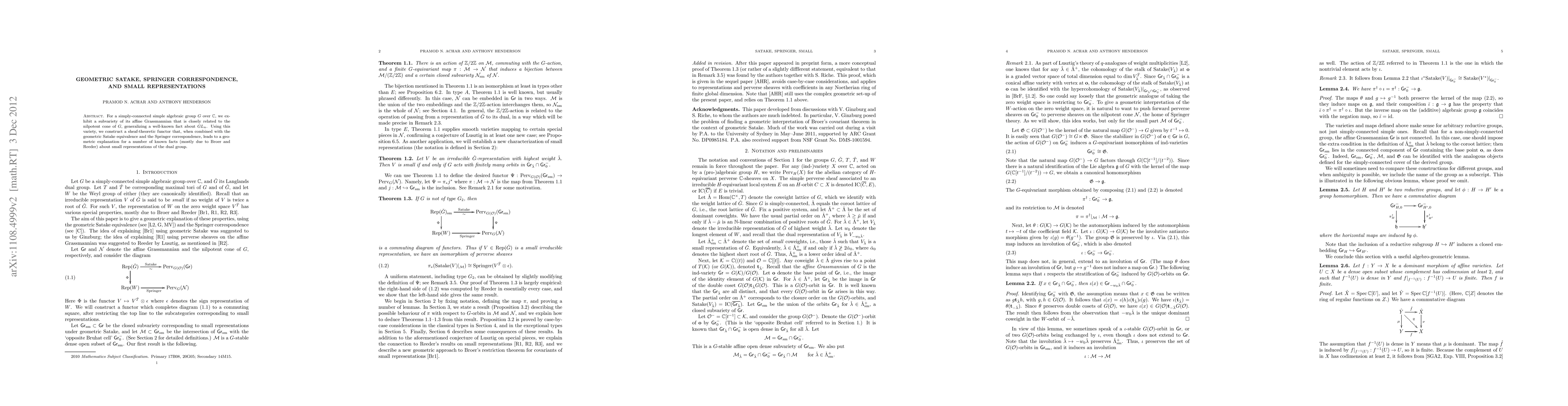 For a simply-connected simple algebraic group $G$ over $\C$, we exhibit a subvariety of its affine Grassmannian that is closely related to the nilpotent cone of $G$, generalizing a well-known fact about $GL_n$. Using this variety, we construct a sheaf-theoretic functor that, when combined with the geometric Satake equivalence and the Springer correspondence, leads to a geometric explanation for a number of known facts (mostly due to Broer and Reeder) about small representations of the dual group.