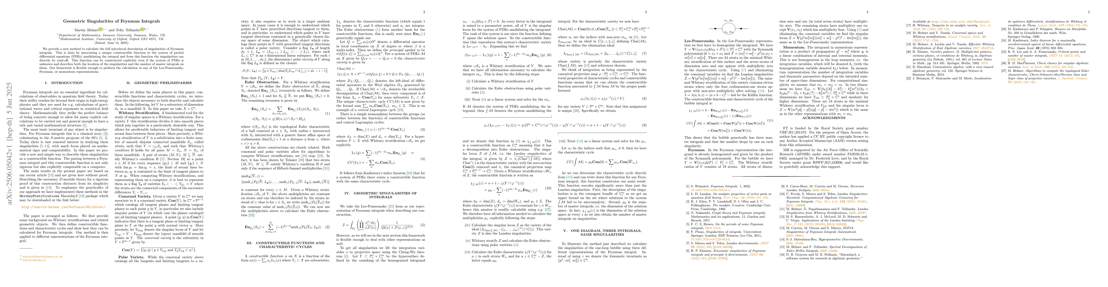 The research introduces a novel method to calculate the microlocal description of singularities in Feynman integrals by associating a unique constructible function to the system of PDEs annihilating the integral, enabling direct reading of singularities and determination of master integrals' location.