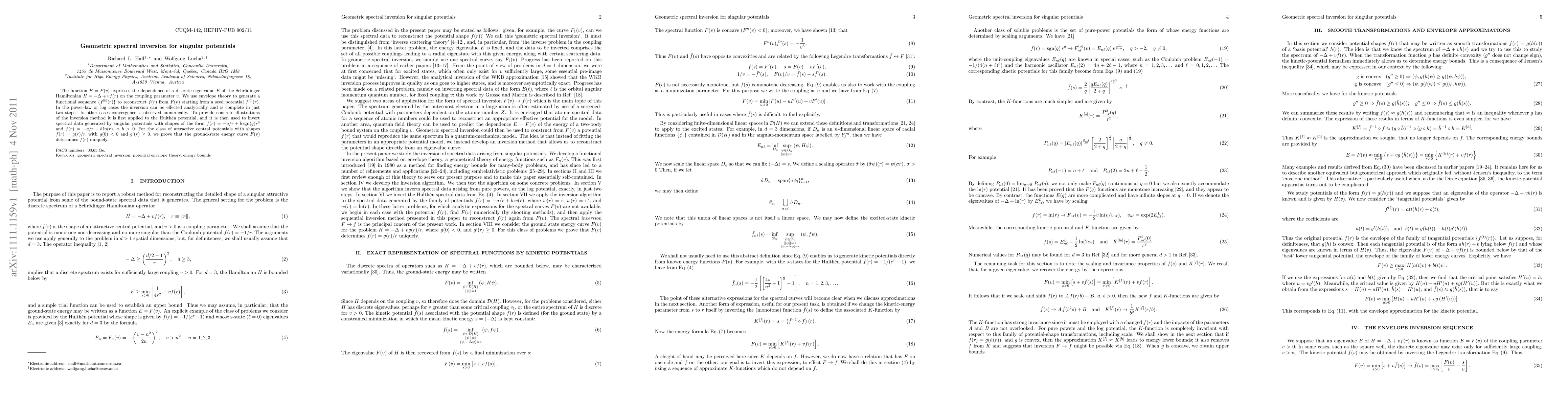 Researchers develop a method to reconstruct singular potentials from their spectral data using geometric spectral inversion, enabling unique determination of ground-state energy curves for attractive central potentials.