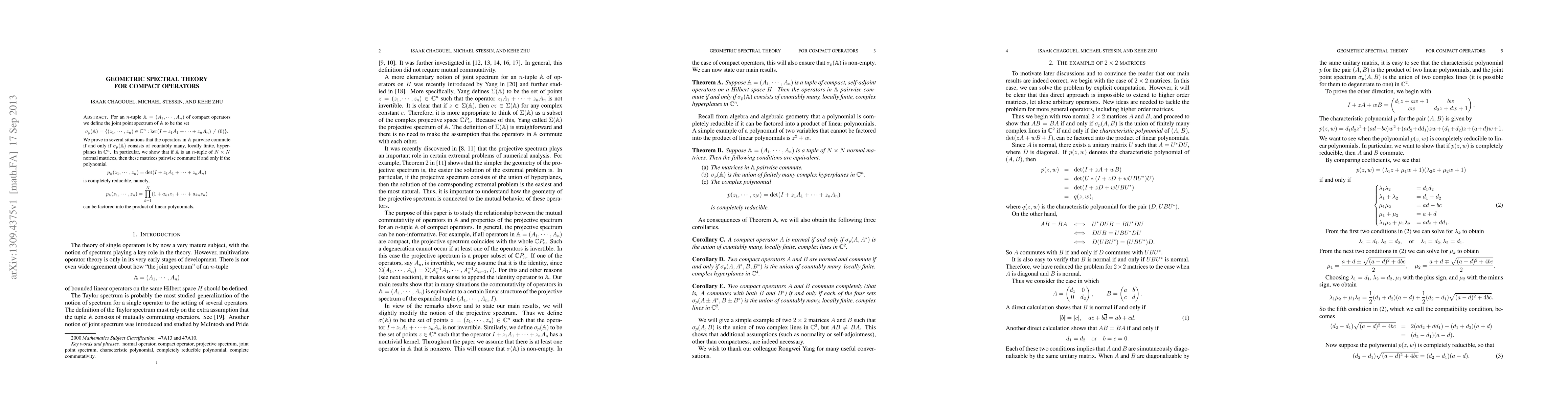 We introduce a notion of joint spectrum for a tuple of compact operators on a separable Hilbert space and show that in many situations these operators commute if and only if the joint spectrum consists of countably many, locally finite, complex hyperplanes. In particular, we show that normal matrices (of the same size) $A_1,\cdots,A_n$ commute if and only if the polynomial $\det(z_1A_1+\cdots+z_nA_n+I)$ is completely reducible, that is, it can be factored into a product of linear polynomials.