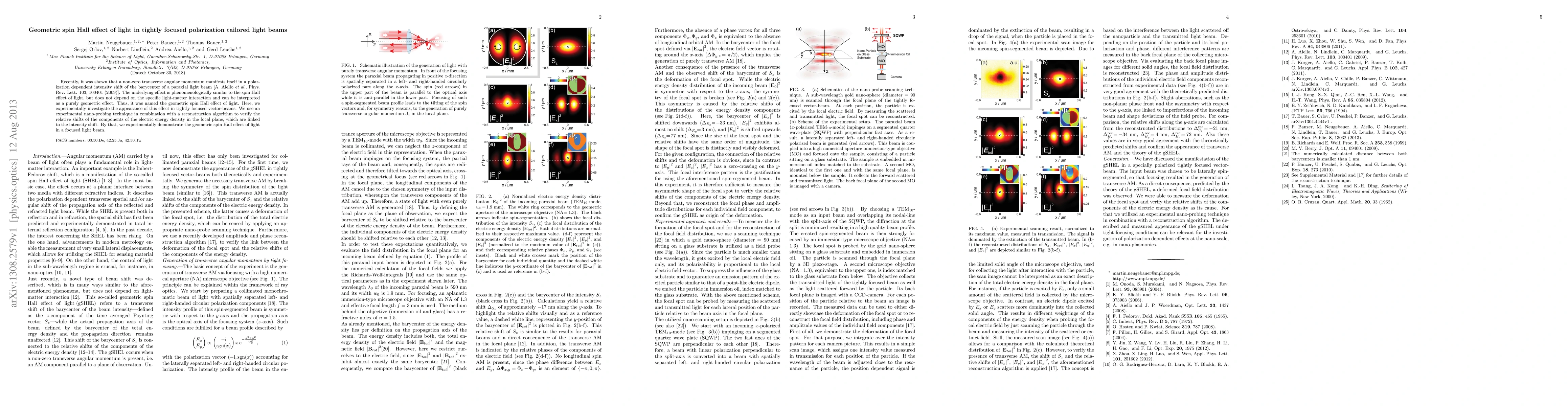 This paper experimentally investigates the geometric spin Hall effect of light in tightly focused vector-beams, demonstrating the phenomenon using a nano-probing technique and reconstruction algorithm to verify shifts in the electric energy density components linked to the intensity shift. The effect is shown to be a purely geometric phenomenon independent of light-matter interactions.