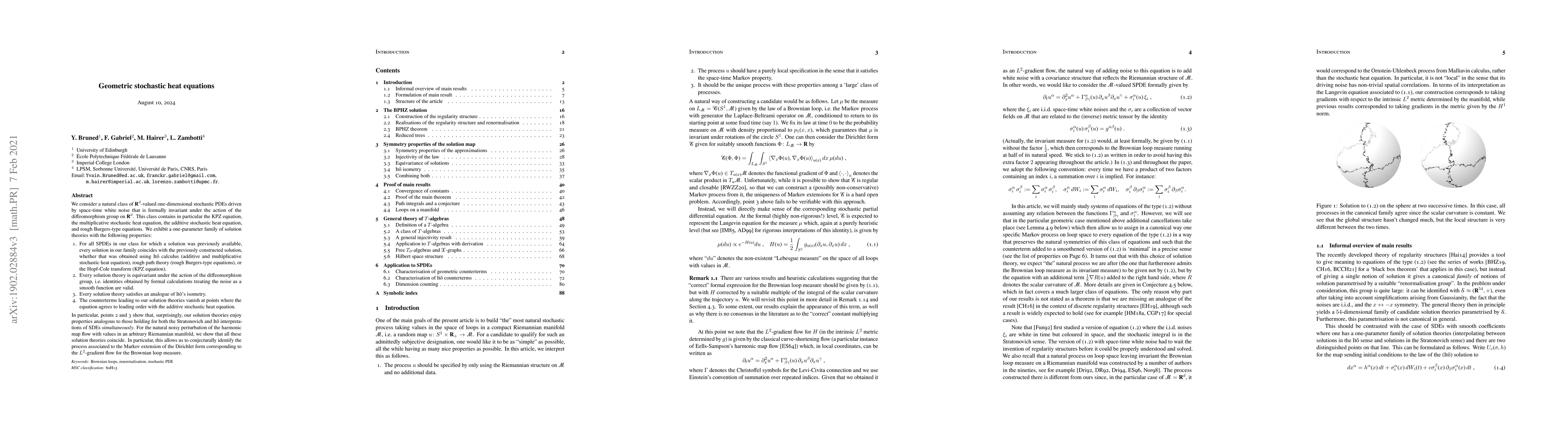 We consider a natural class of $\mathbf{R}^d$-valued one-dimensional stochastic PDEs driven by space-time white noise that is formally invariant under the action of the diffeomorphism group on $\mathbf{R}^d$. This class contains in particular the KPZ equation, the multiplicative stochastic heat equation, the additive stochastic heat equation, and rough Burgers-type equations. We exhibit a one-parameter family of solution theories with the following properties: - For all SPDEs in our class for which a solution was previously available, every solution in our family coincides with the previously constructed solution, whether that was obtained using It\^o calculus (additive and multiplicative stochastic heat equation), rough path theory (rough Burgers-type equations), or the Hopf-Cole transform (KPZ equation). - Every solution theory is equivariant under the action of the diffeomorphism group, i.e. identities obtained by formal calculations treating the noise as a smooth function are valid. - Every solution theory satisfies an analogue of It\^o's isometry. - The counterterms leading to our solution theories vanish at points where the equation agrees to leading order with the additive stochastic heat equation. In particular, points 2 and 3 show that, surprisingly, our solution theories enjoy properties analogous to those holding for both the Stratonovich and It\^o interpretations of SDEs simultaneously. For the natural noisy perturbation of the harmonic map flow with values in an arbitrary Riemannian manifold, we show that all these solution theories coincide. In particular, this allows us to conjecturally identify the process associated to the Markov extension of the Dirichlet form corresponding to the $L^2$-gradient flow for the Brownian loop measure.