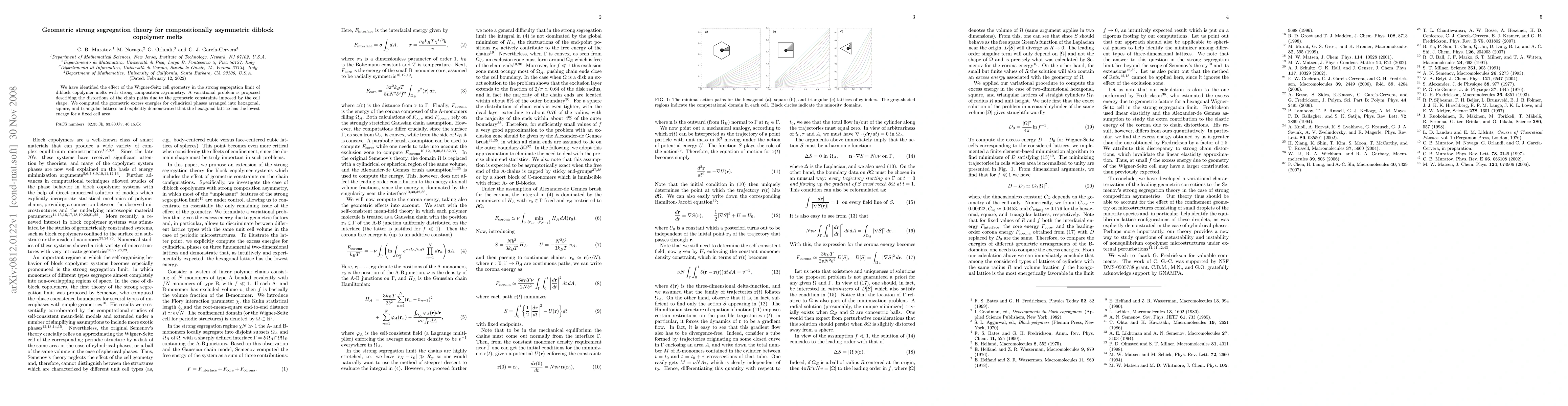 This paper explores the geometric strong segregation theory for compositionally asymmetric diblock copolymer melts, proposing a variational problem to describe chain path distortions due to Wigner-Seitz cell geometry. It finds that the hexagonal lattice minimizes geometric excess energy for cylindrical phases.
