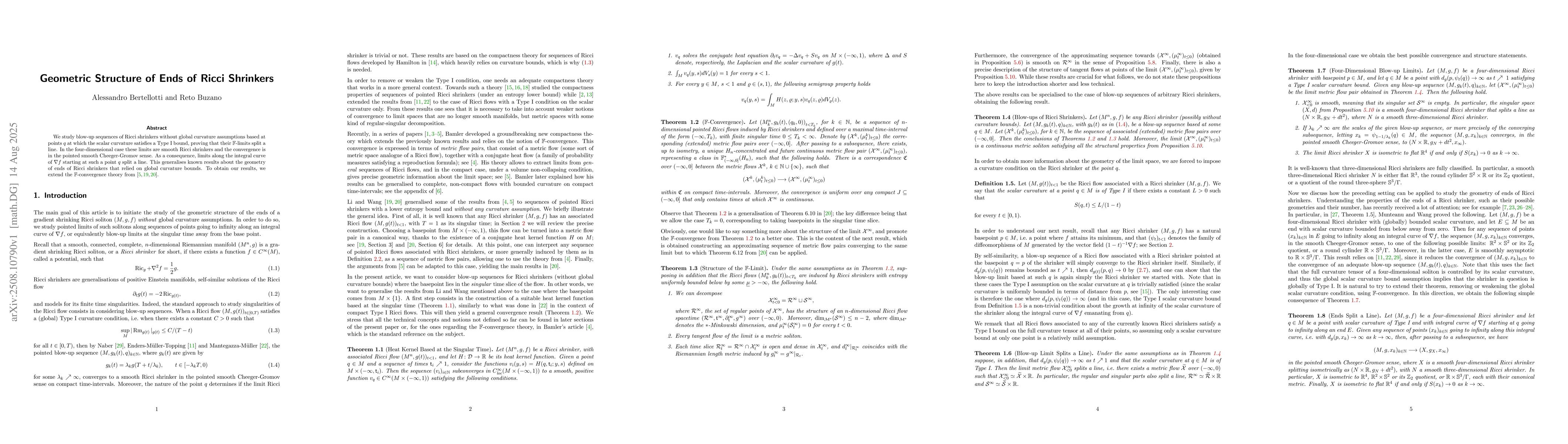 We study blow-up sequences of Ricci shrinkers without global curvature assumptions based at points $q$ at which the scalar curvature satisfies a Type I bound, proving that their $\mathbb{F}$-limits split a line. In the four-dimensional case these limits are smooth Ricci shrinkers and the convergence is in the pointed smooth Cheeger-Gromov sense. As a consequence, limits along the integral curve of $\nabla f$ starting at such a point $q$ split a line. This generalises known results about the geometry of ends of Ricci shrinkers that relied on global curvature bounds. To obtain our results, we extend the $\mathbb{F}$-convergence theory from Bamler and Li-Wang.