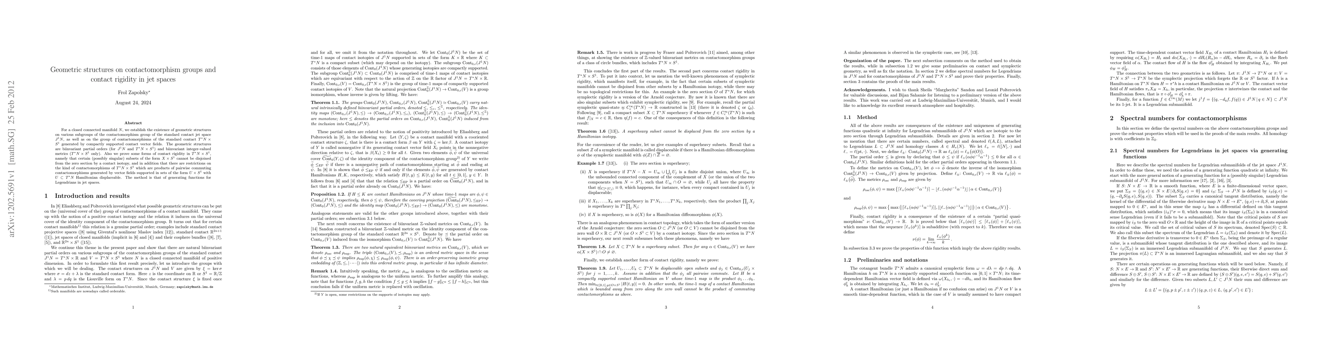 This paper establishes geometric structures on subgroups of contactomorphism groups in standard contact jet spaces and proves contact rigidity in T*N × S^1, including biinvariant partial orders and integer-valued metrics, and restrictions on certain contactomorphisms. The method employs generating functions for Legendrians in jet spaces.