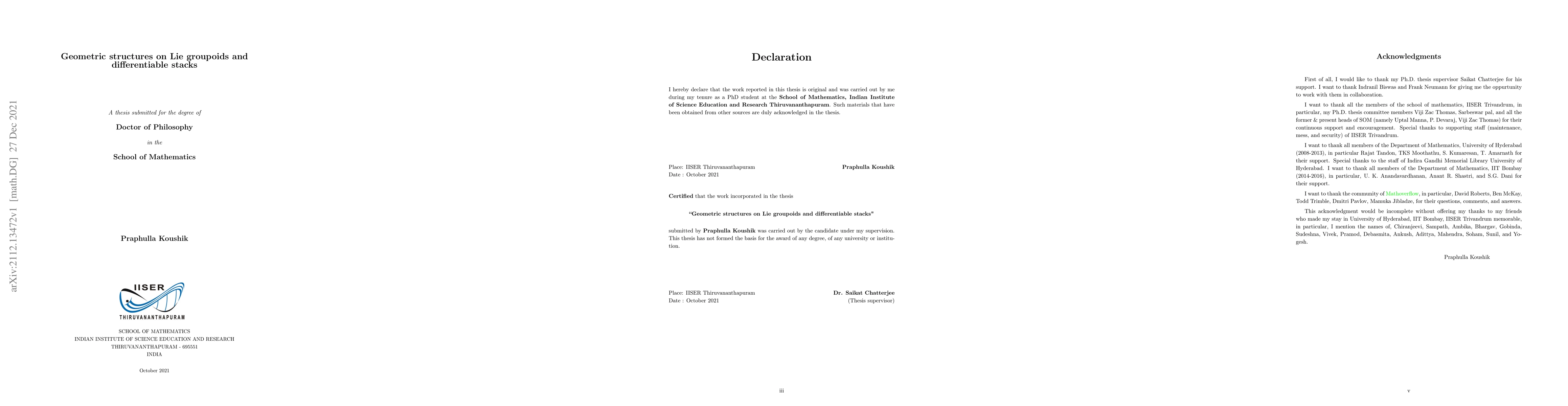 This PhD thesis explores geometric structures on Lie groupoids and differentiable stacks, including correspondences between gerbes over stacks, Chern-Weil maps for principal bundles over Lie groupoids, and connections on principal bundles over Deligne-Mumford stacks. It also introduces topological groupoid extensions and their relation to gerbes over topological stacks.