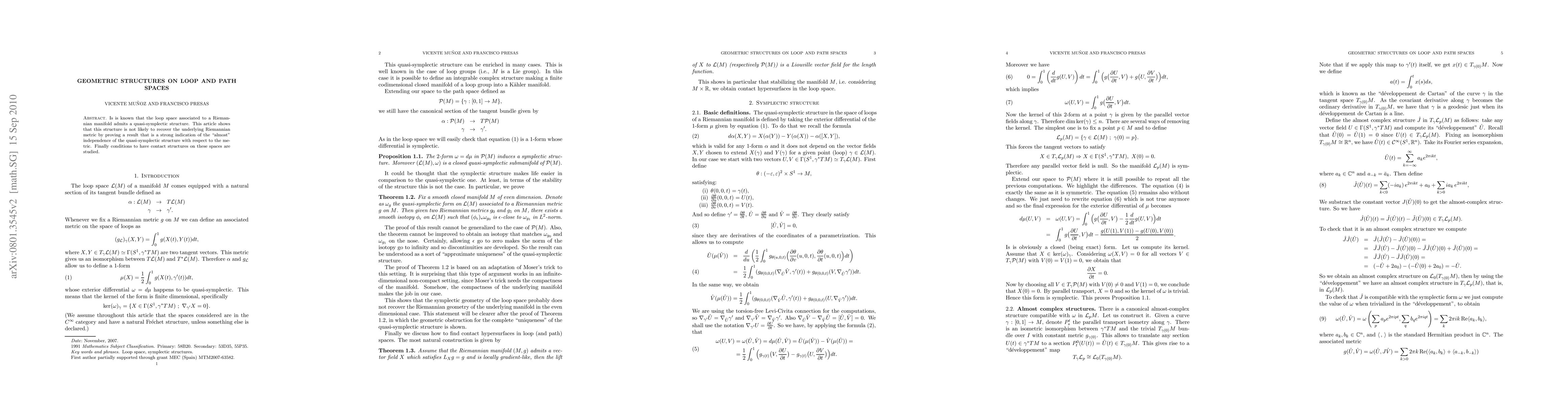 This research paper investigates the relationship between quasi-symplectic structures on loop and path spaces of Riemannian manifolds, showing that the quasi-symplectic structure is almost independent of the underlying metric.
