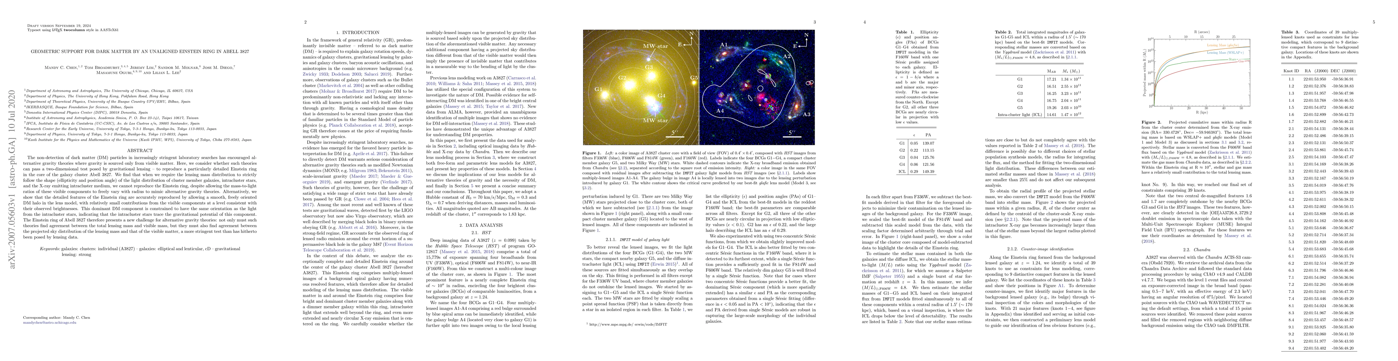 The paper investigates whether alternative gravity theories, which attribute gravity solely to visible matter, can explain the detailed Einstein ring in Abell 3827. It finds that these theories fail to reproduce the ring's features when only visible mass components are considered, but accurately reproduces the ring when a dark matter halo is included.