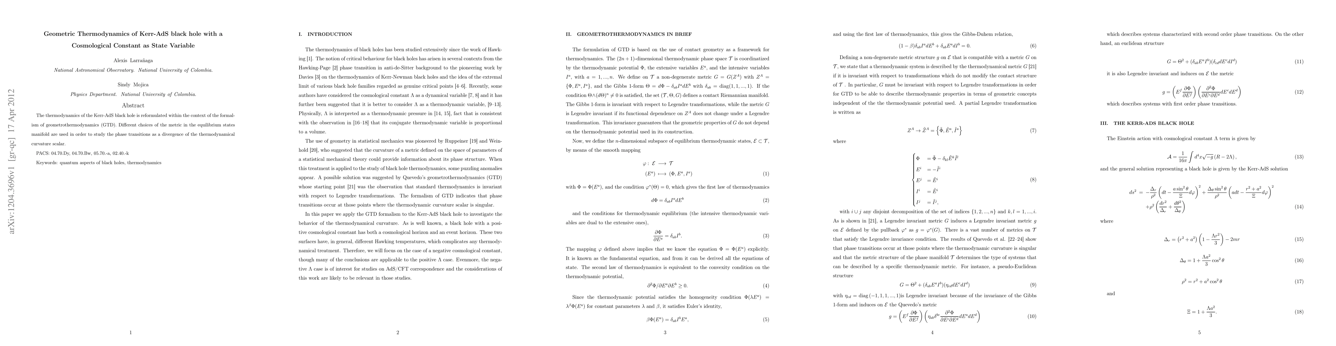 The application of Quevedo's geometrothermodynamics to the Kerr-AdS black hole, highlighting the importance of considering the cosmological constant as a thermodynamical variable.