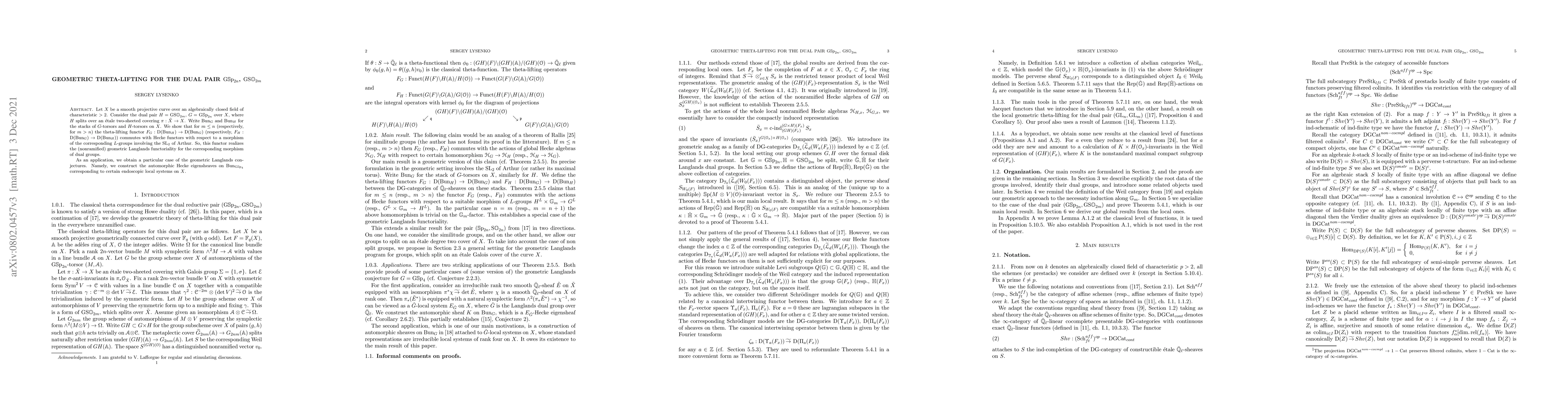 This paper demonstrates geometric theta-lifting for the dual pair GSp_{2n} and GSO_{2m}, proving its functoriality with respect to Hecke functors and realizing the geometric Langlands correspondence for GSp_4. It constructs automorphic Hecke eigensheaves corresponding to endoscopic local systems on the moduli stack of GSp_4-torsors.