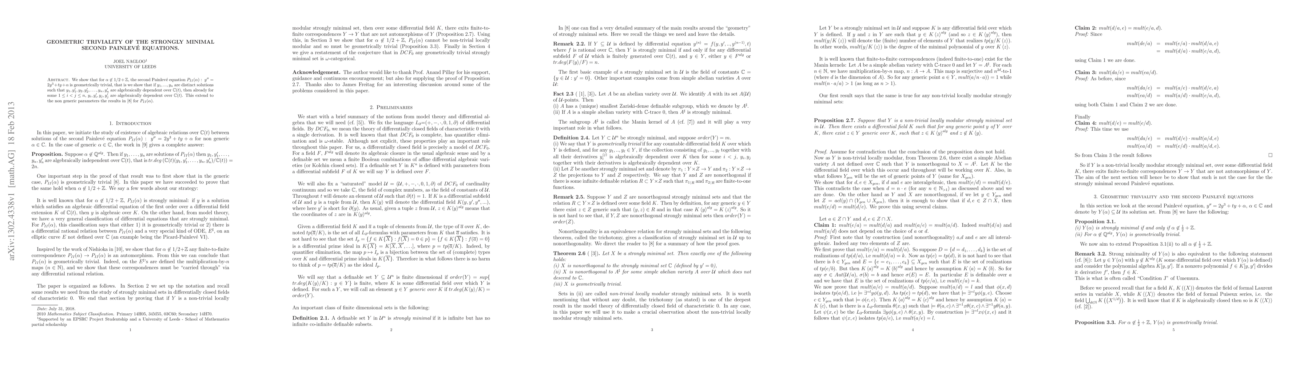 We show that the strongly minimal second Painlev\'e equation (y" =