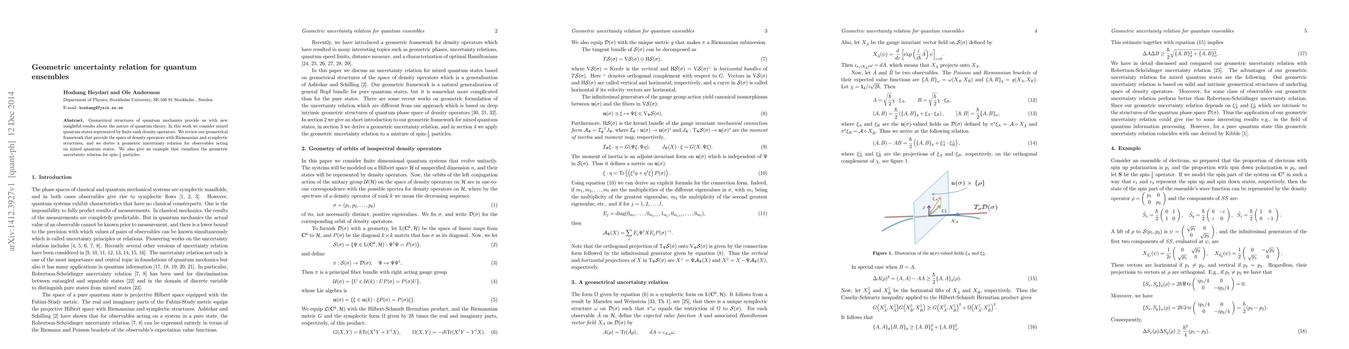 This paper develops a geometric uncertainty relation for mixed quantum states using density operators, embedding them within Riemannian and symplectic structures, and provides a visualization example for spin-$\frac{1}{2}$ particles.