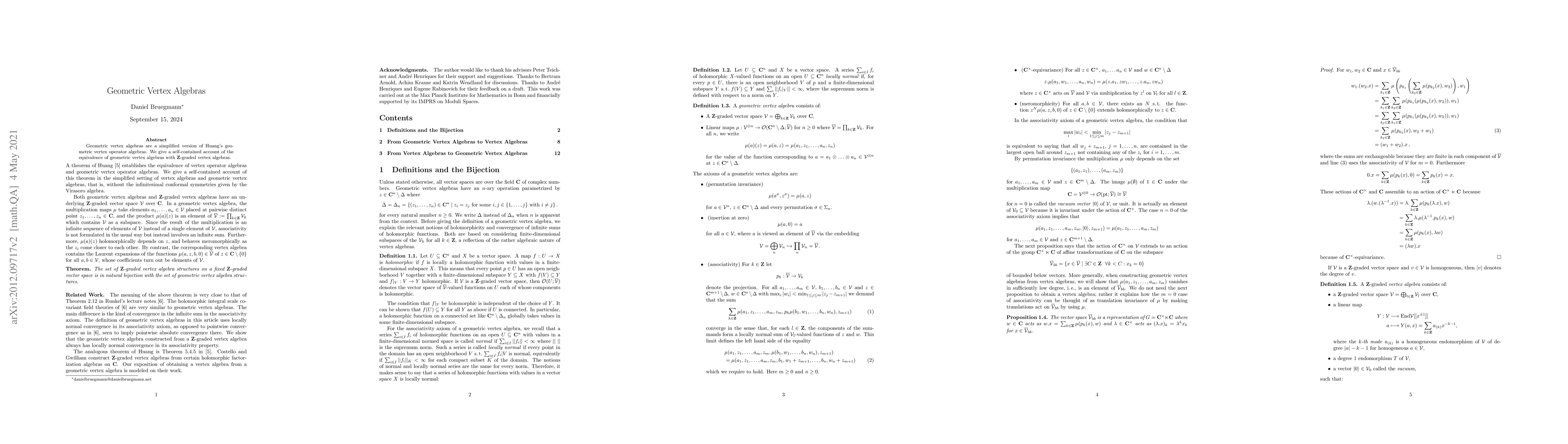 Summary: This paper explores geometric vertex algebras, presenting a simplified version of Huang's geometric vertex operator algebras, and demonstrates their equivalence with Z-graded vertex algebras in a self-contained manner.