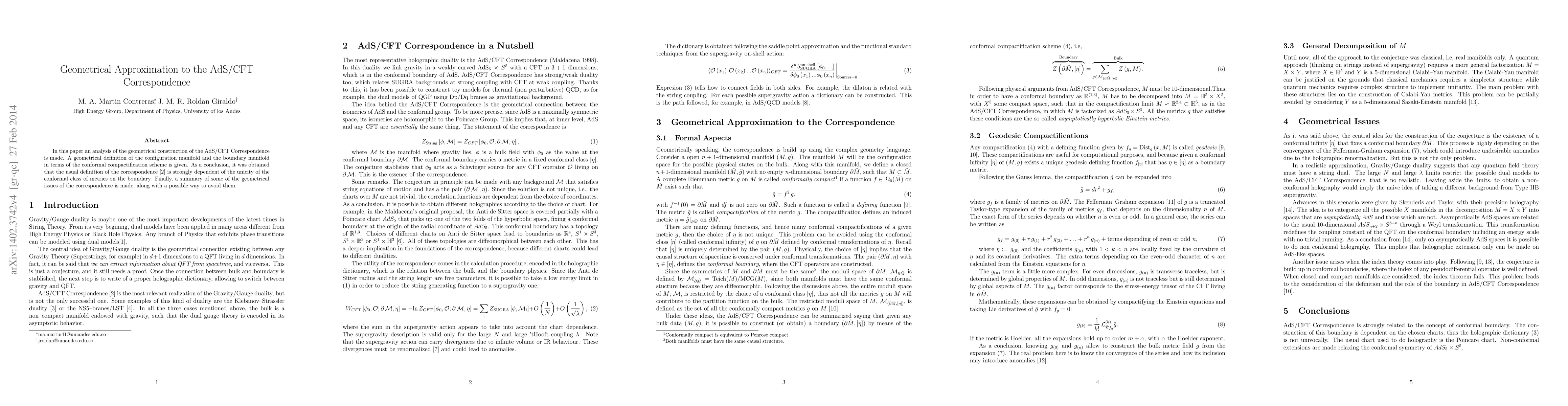 In this paper an analysis of the geometrical construction of the AdS/CFT Correspondence is made. A geometrical definition of the configuration manifold and the boundary manifold in terms of the conformal compactification scheme is given. As a conclusion, it was obtained that the usual definition of the correspondence is strongly dependent of the unicity of the conformal class of metrics on the boundary. Finally, a summary of some of the geometrical issues of the correspondence is made, along with a possible way to avoid them.