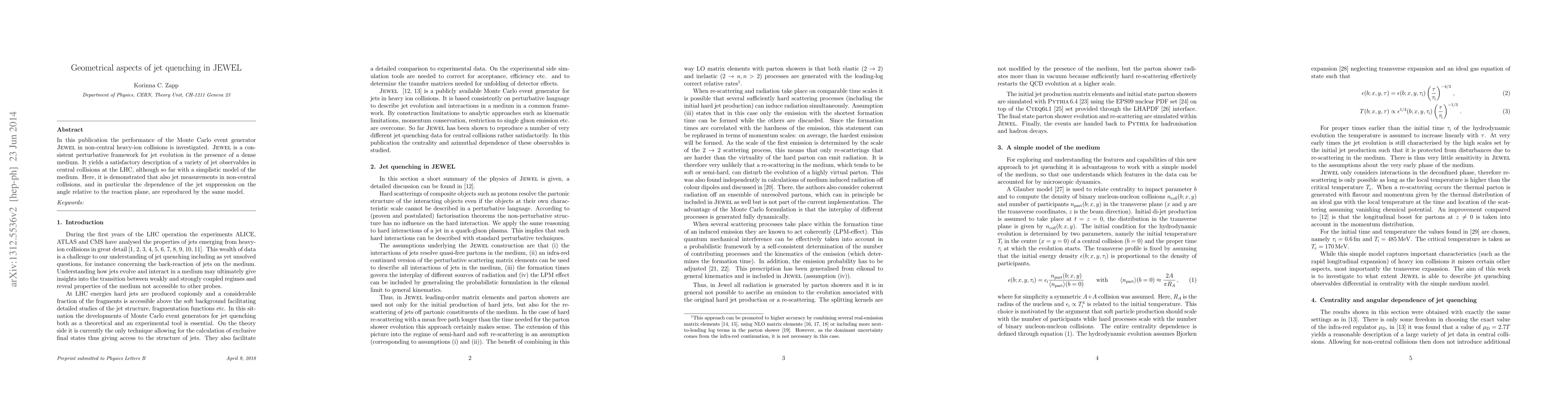 A perturbative framework for jet quenching was developed using the JEWEL2.0.0 Monte Carlo generator.