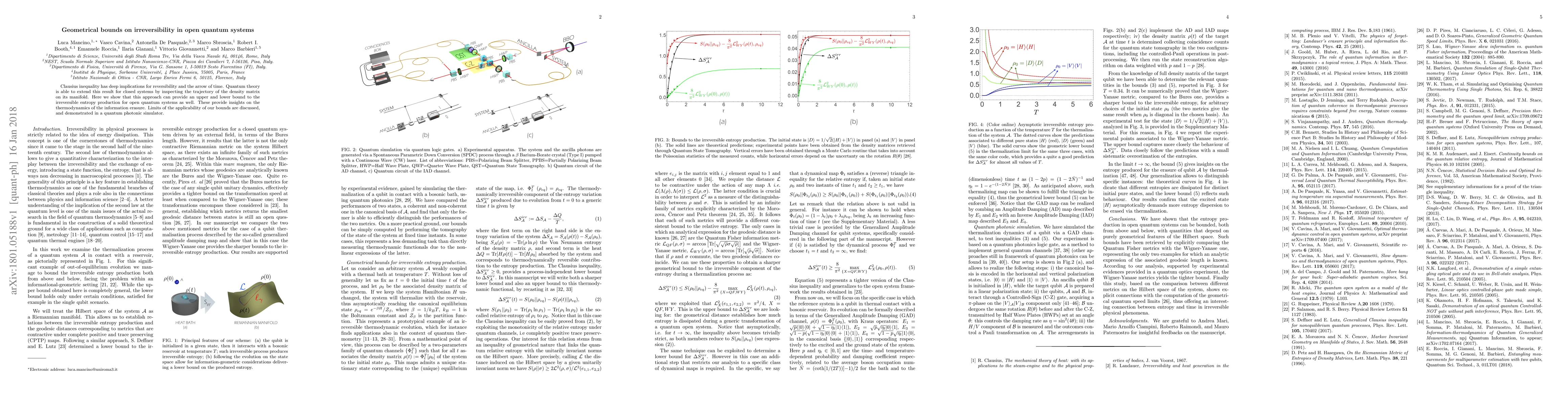 Clausius inequality has deep implications for reversibility and the arrow of time. Quantum theory is able to extend this result for closed systems by inspecting the trajectory of the density matrix on its manifold. Here we show that this approach can provide an upper and lower bound to the irreversible entropy production for open quantum systems as well. These provide insights on the thermodynamics of the information erasure. Limits of the applicability of our bounds are discussed, and demonstrated in a quantum photonic simulator.
