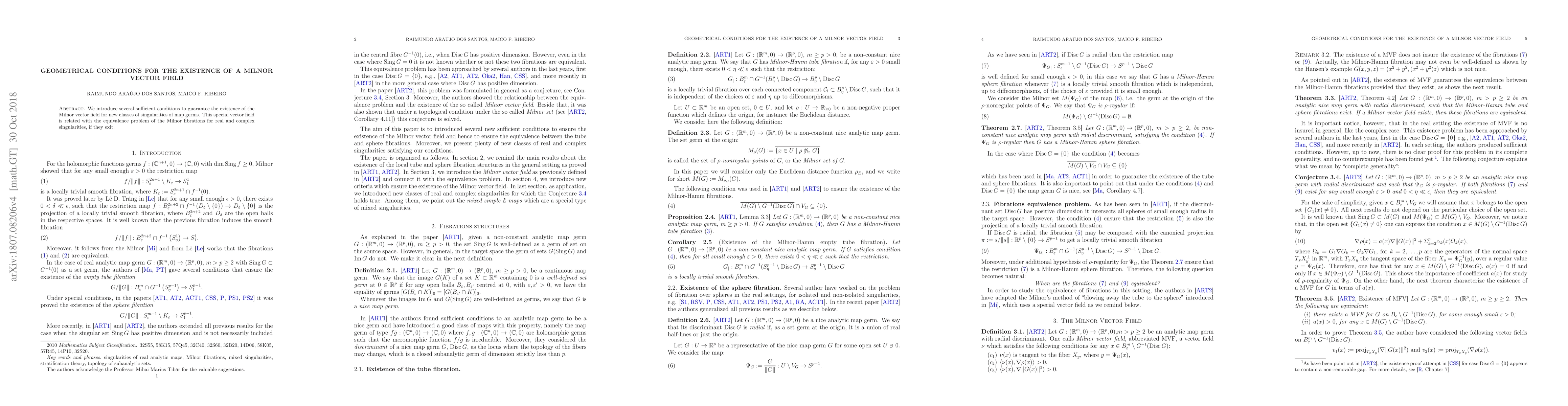 Summary: This paper provides sufficient conditions for the existence of Milnor vector fields in new classes of singularity map germs, contributing to the equivalence problem of Milnor fibrations for real and complex singularities.