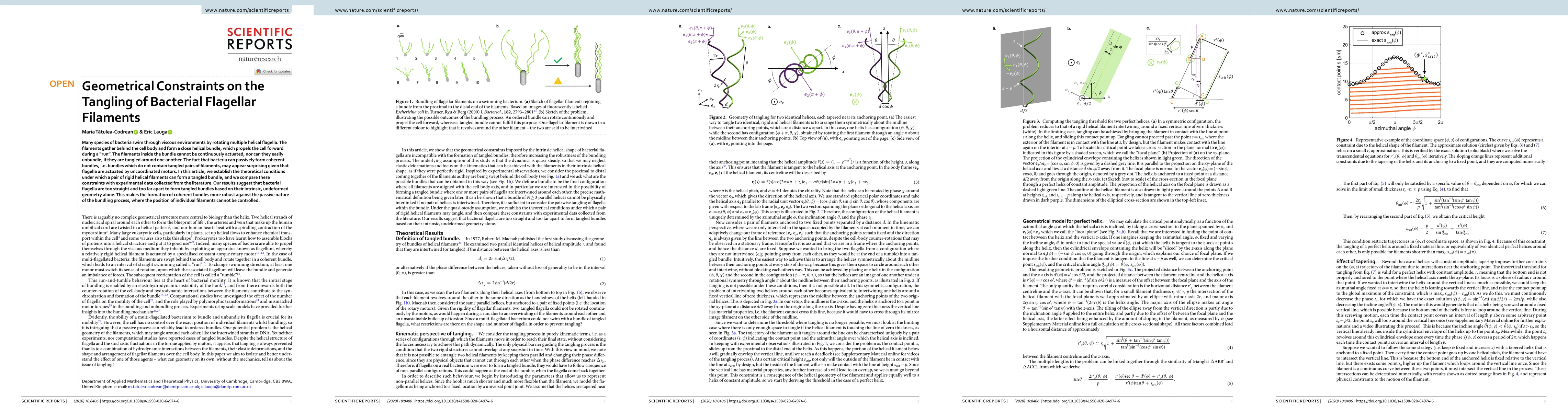 Theoretical conditions suggest that the geometry of flagella alone prevents tangled bundles, contradicting expectations given uncoordinated motor actuation.
