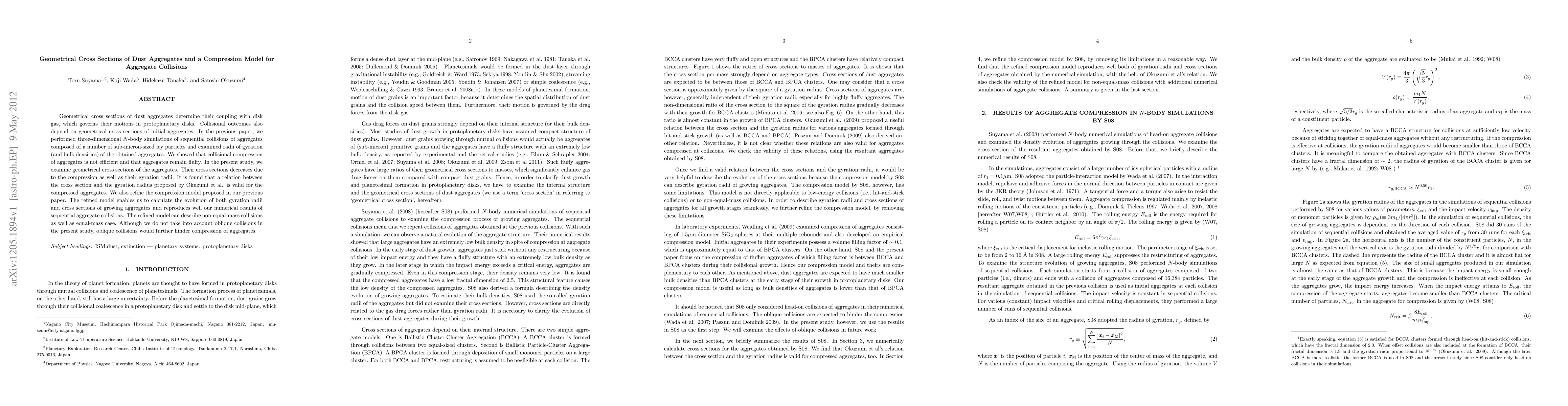 This paper investigates the geometrical cross sections of dust aggregates in protoplanetary disks and refines a collision compression model. It finds that aggregate cross sections decrease with compression and gyration radii, validating a proposed relation and improving the model to accurately simulate aggregate evolution and collision outcomes.