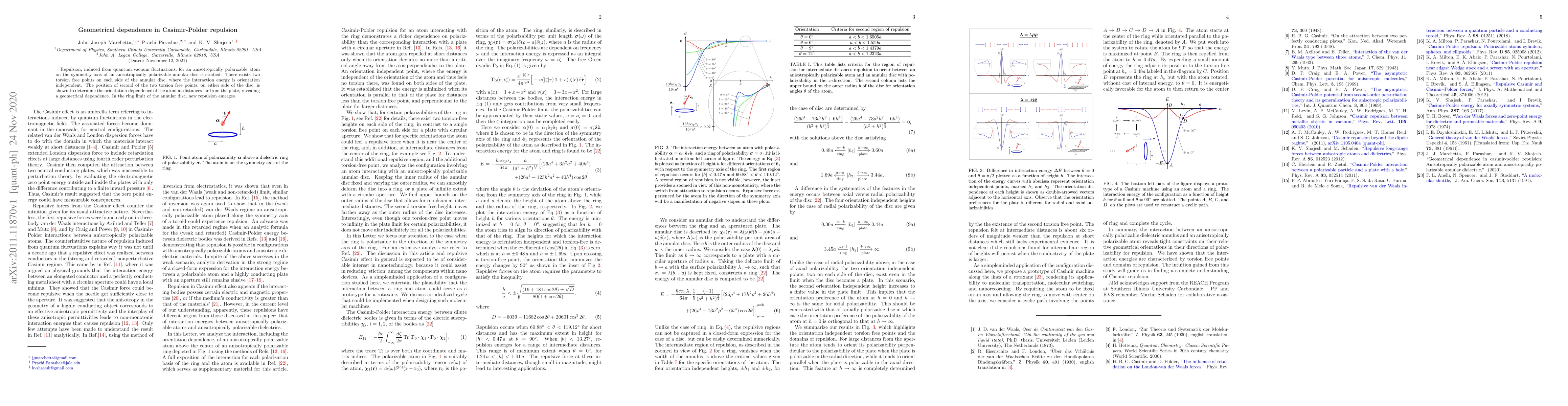 Repulsion, induced from quantum vacuum fluctuations, for an anisotropically polarizable atom on the symmetry axis of an anisotropically polarizable annular disc is studied. There exists two torsion free points on each side of the annular disc, where the interaction energy is orientation independent. The position of second of the two torsion free points, on either side of the disc, is shown to determine the orientation dependence of the atom at distances far from the plate, revealing a geometrical dependence. In the ring limit of the annular disc, new repulsion emerges.