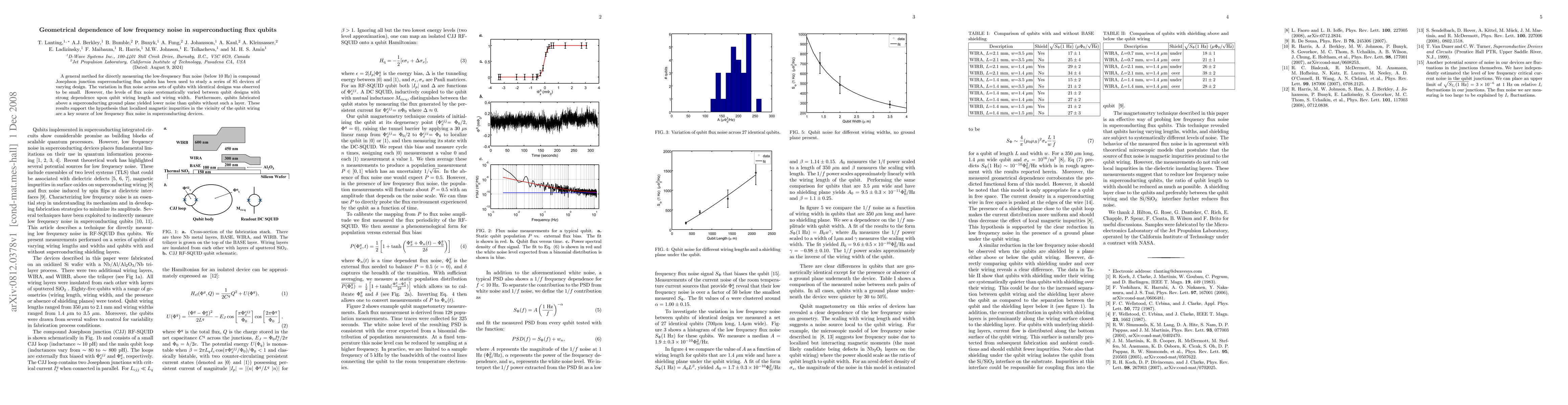 This study presents a method for measuring low-frequency flux noise in superconducting flux qubits, revealing that noise levels vary significantly with wiring length and width, and are lower in qubits with a superconducting ground plane, suggesting localized magnetic impurities impact noise.