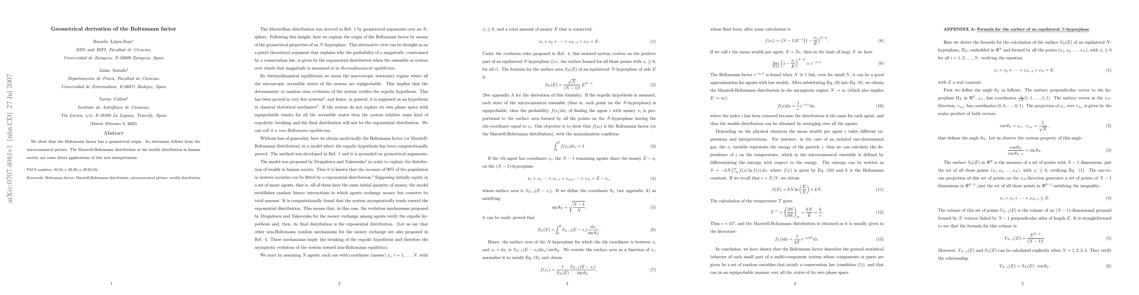 The research provides a new interpretation of the Boltzmann factor as a geometrical derivation from the microcanonical ensemble.