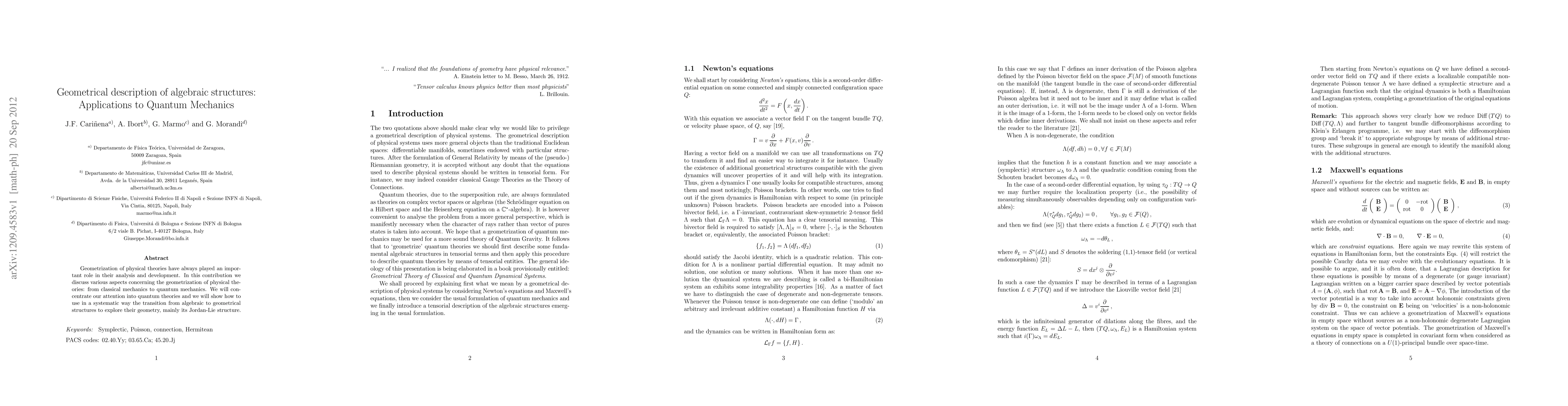 This paper explores the transition from algebraic to geometrical structures in quantum mechanics, focusing on the Jordan-Lie structure to enhance the understanding of quantum theories through geometric methods. The study highlights the significance of geometrization in the analysis and development of physical theories.