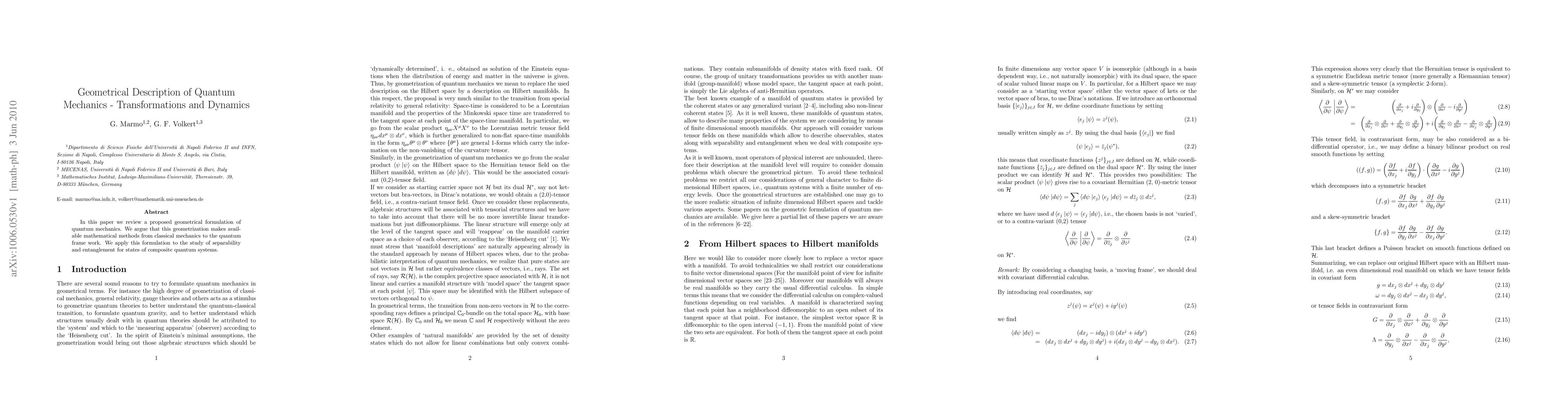 This paper proposes a geometrical framework for quantum mechanics, leveraging classical mechanics' mathematical methods to study separability and entanglement in composite quantum systems. The geometrization aims to better understand transformations and dynamics within quantum mechanics.