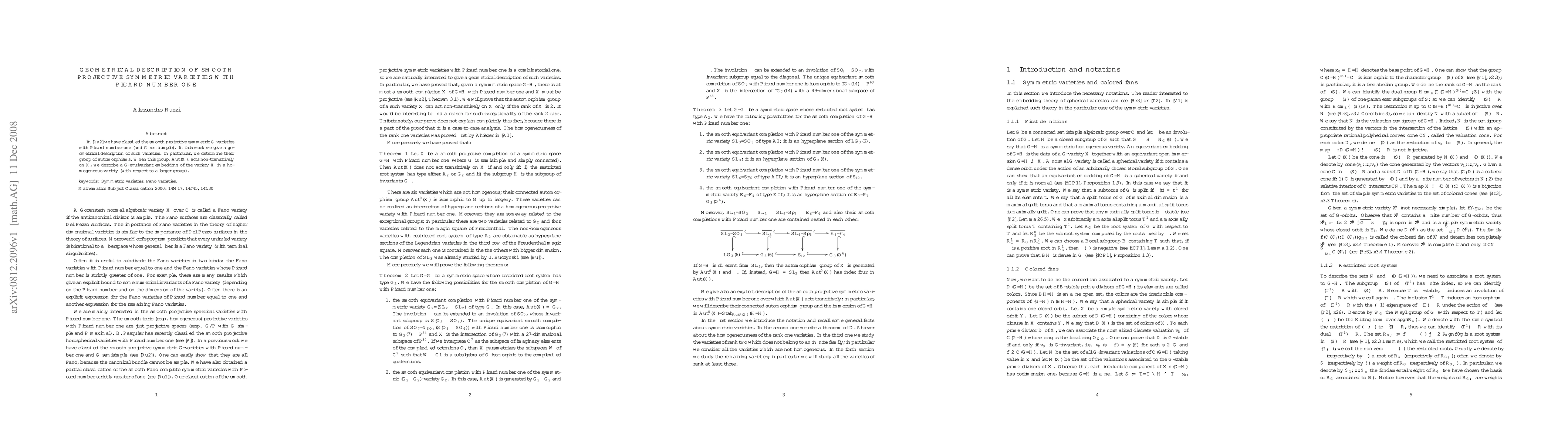 This paper provides a geometrical description and automorphism group analysis for smooth projective symmetric varieties with a Picard number one, extending previous classifications. It also explores G-equivariant embeddings of these varieties into larger homogeneous varieties when their automorphism groups act non-transitively.