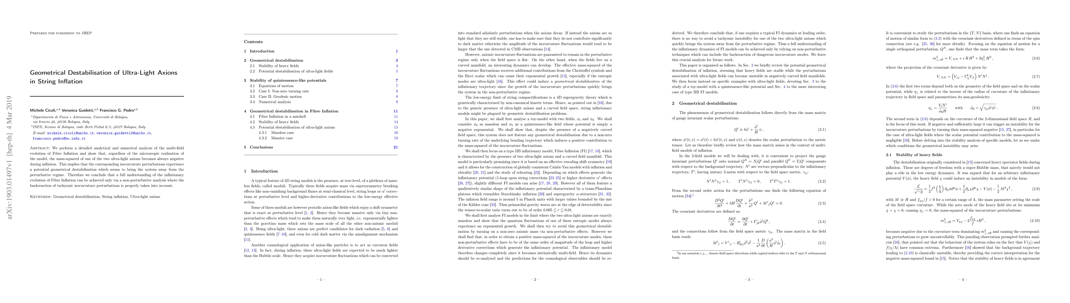 This paper investigates the multi-field dynamics of Fibre Inflation, revealing that one ultra-light axion's mass-squared becomes negative during inflation, leading to geometrical destabilisation of isocurvature perturbations. A non-perturbative analysis is required to fully understand the inflationary dynamics due to the tachyonic isocurvature perturbations.
